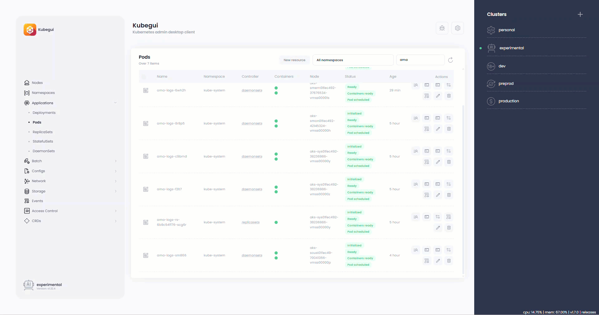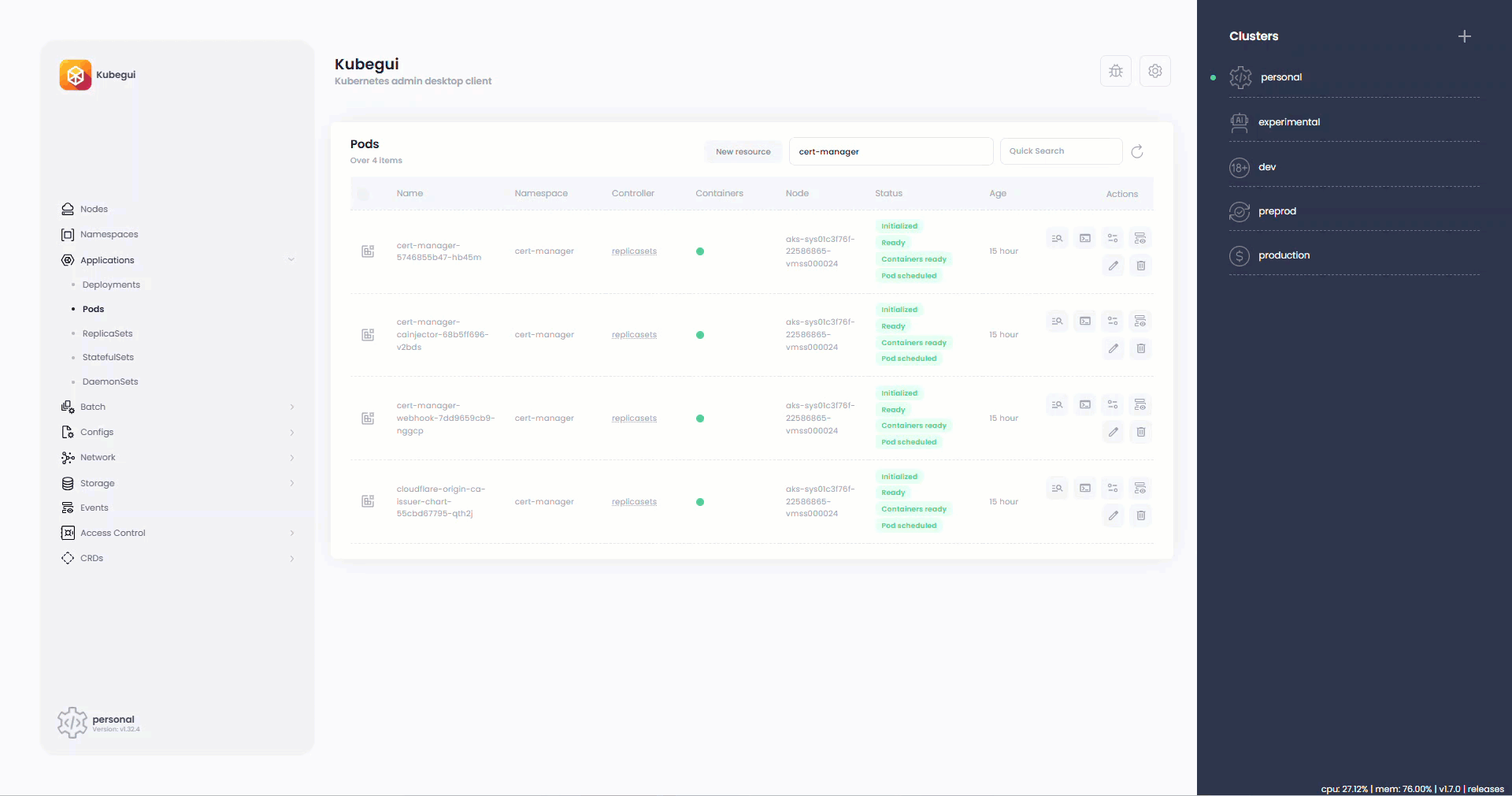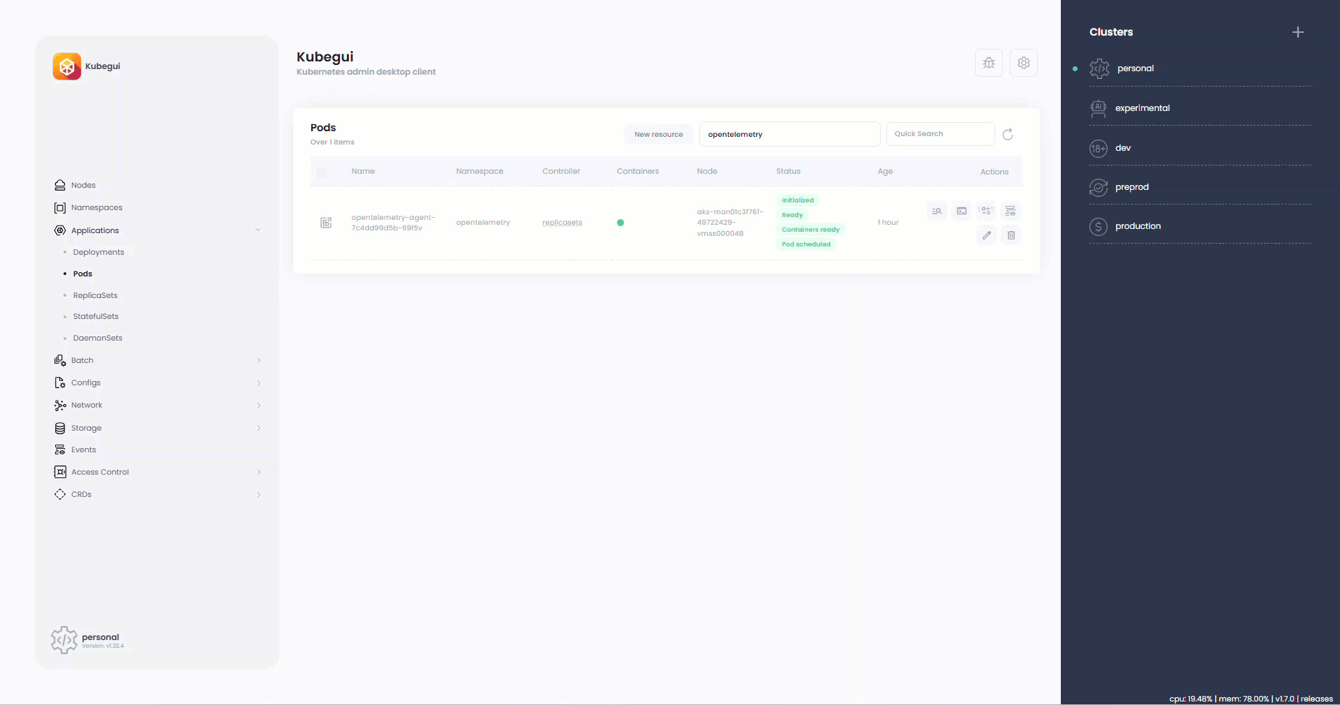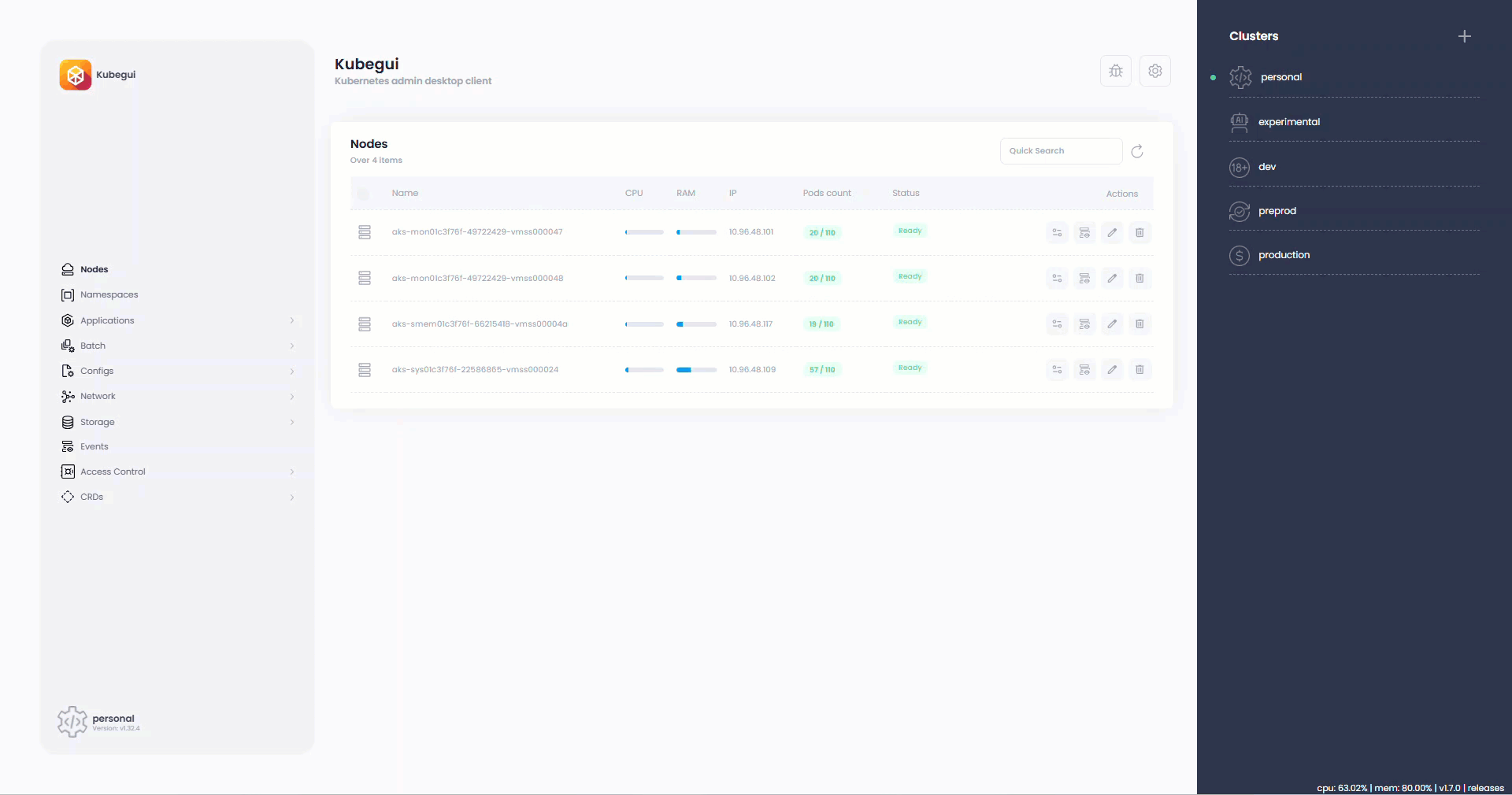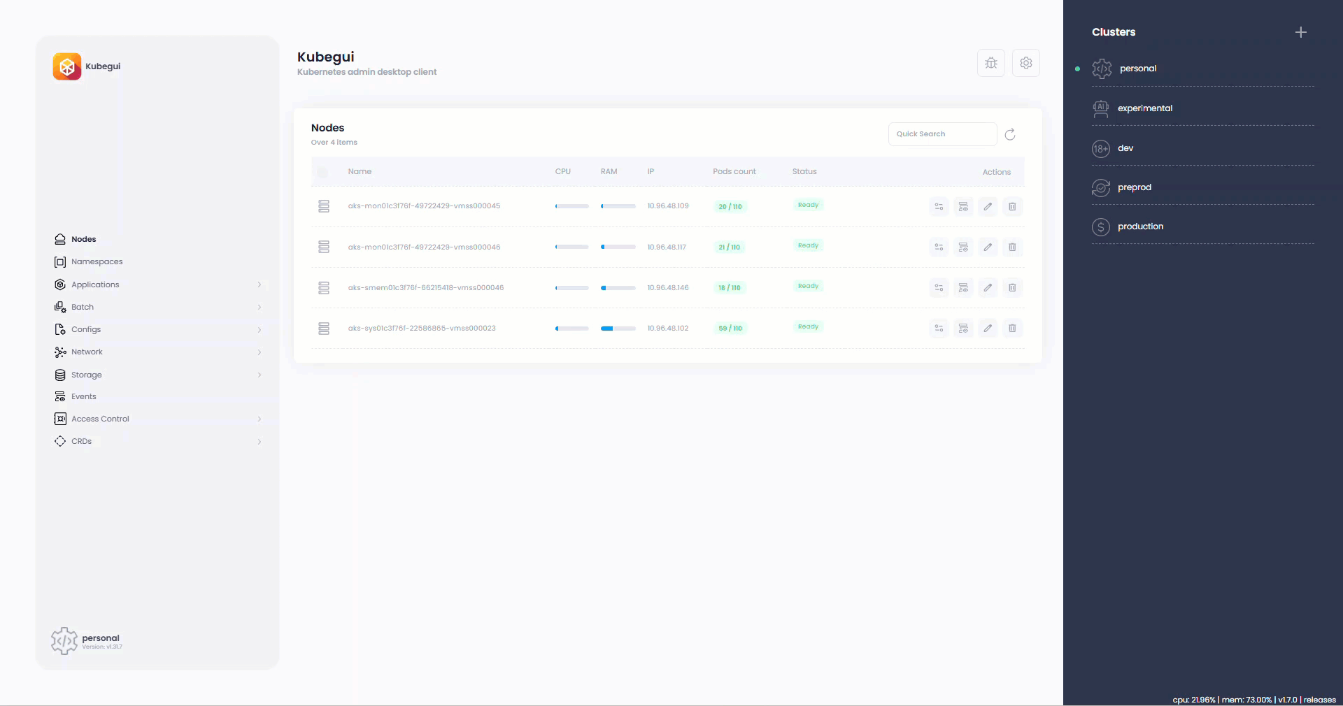 Integrated Nodes and Pods metrics (metrics-server required).